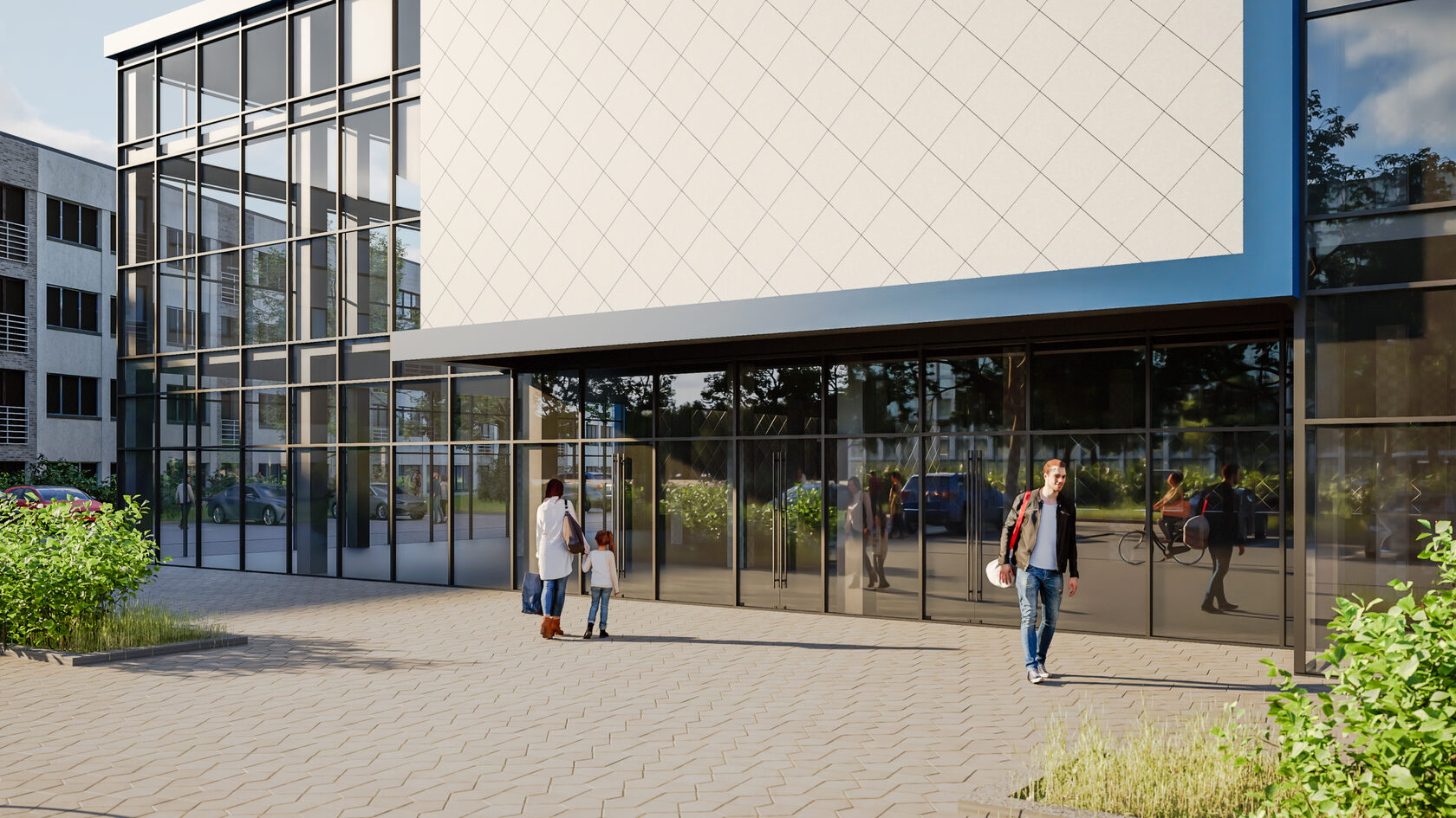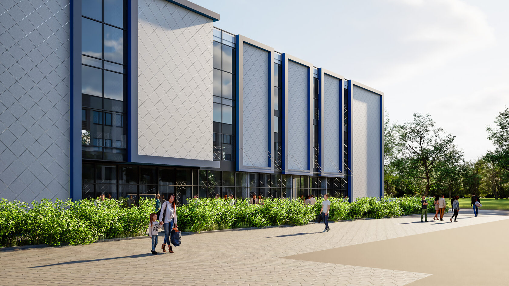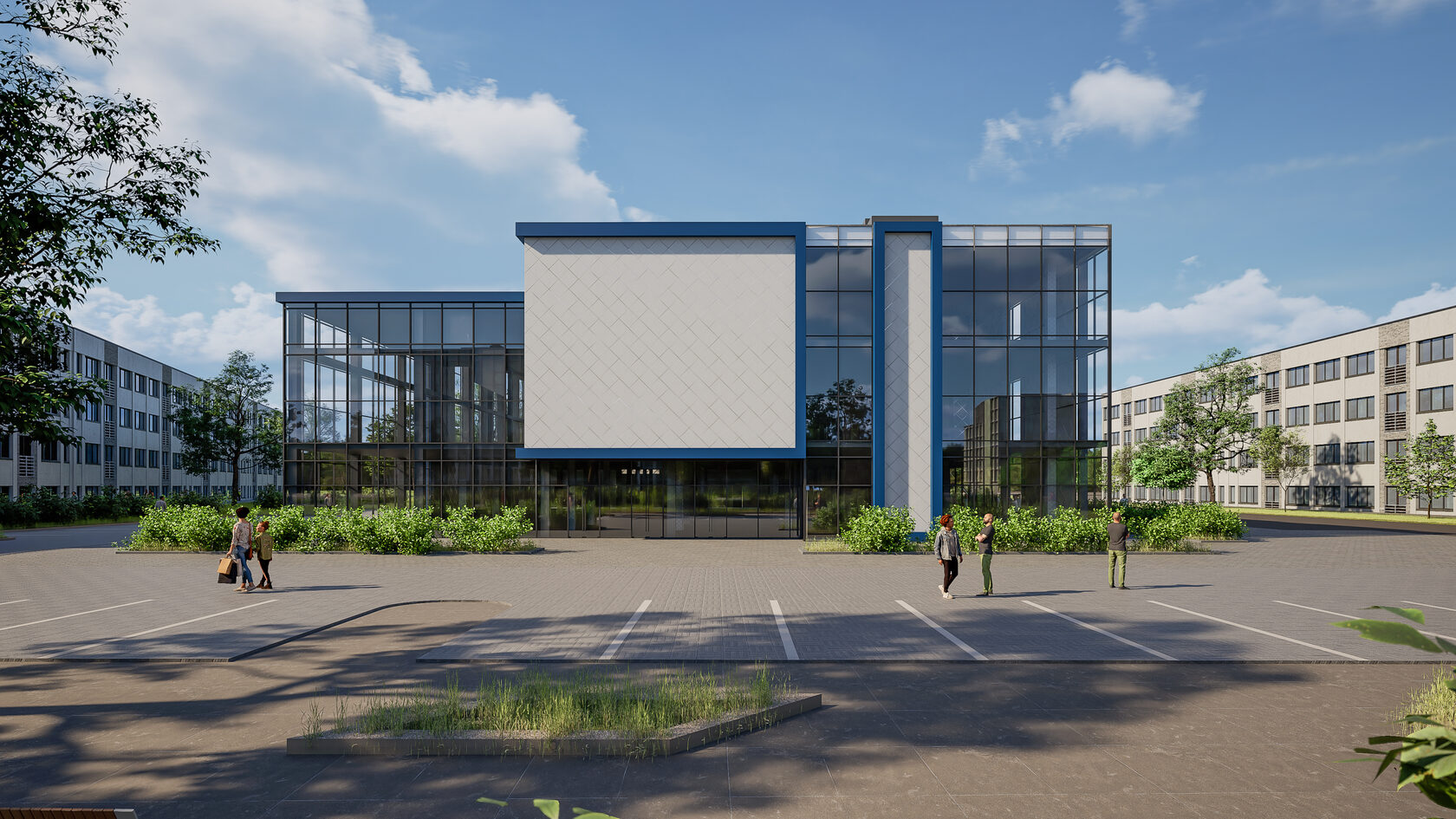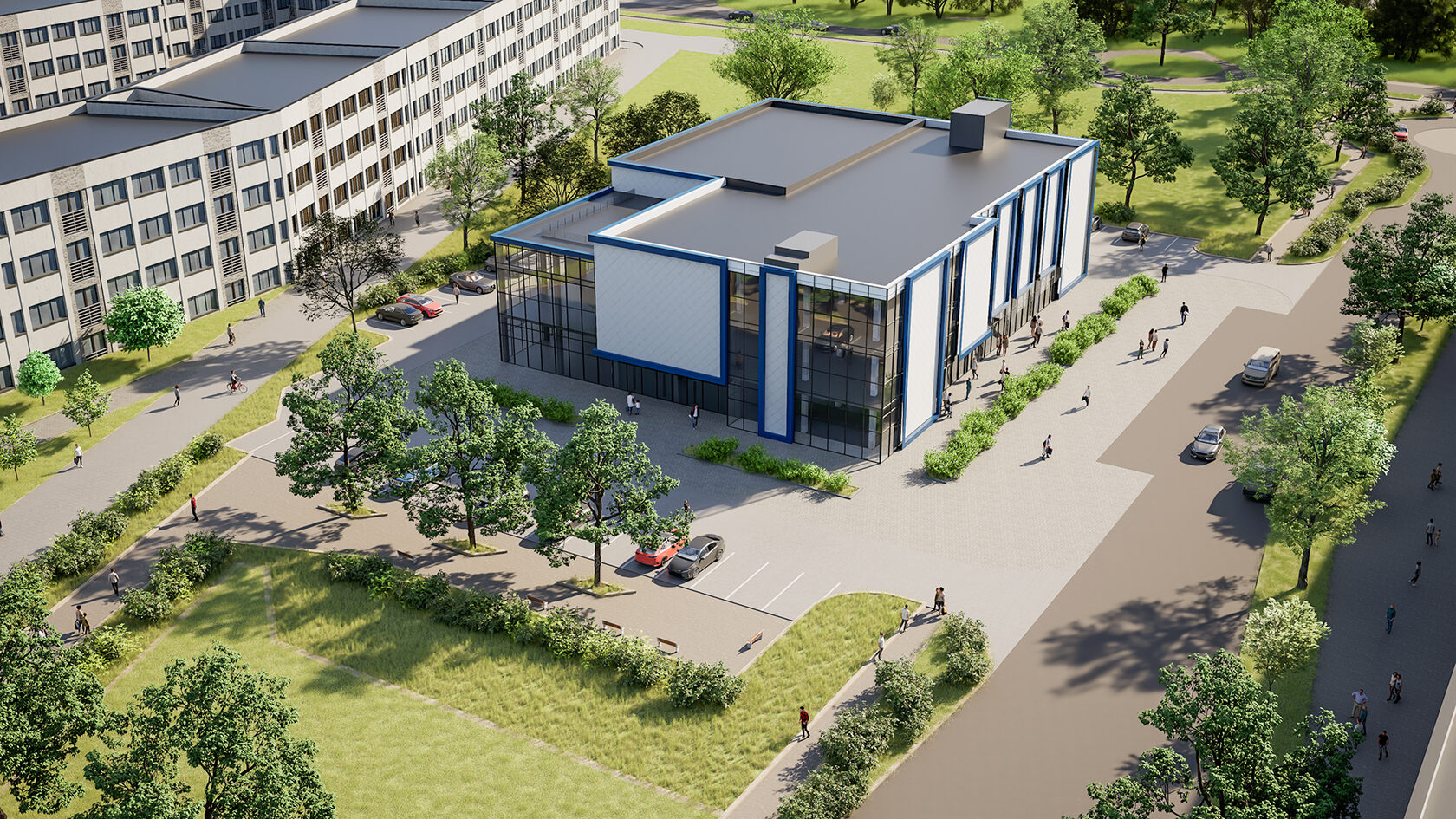 Включает в себя спортивную зону (ССК) и зону коммерческих помещений (торговый центр). В центральной части спортивной зоны размещен ресепшен с расположенными рядом обязательными (комната хранения оружия (КХО); комната выдачи оружия (КВО); помещение для хранения расходных и отделочных материалов; гардероб и вспомогательными помещениями (комната отдыха персонала, кабинет директора, лекторий, интерактивный класс).