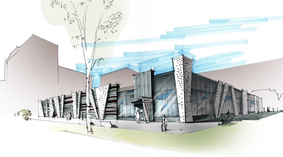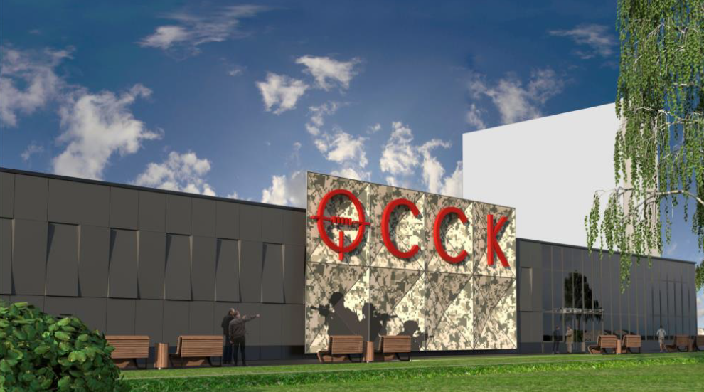 Включает в себя спортивную зону (ССК) и зону коммерческих помещений (торговый центр). В центральной части спортивной зоны размещен ресепшен с расположенными рядом обязательными (комната хранения оружия (КХО); комната выдачи оружия (КВО); помещение для хранения расходных и отделочных материалов; гардероб и вспомогательными помещениями (комната отдыха персонала, кабинет директора, лекторий, интерактивный класс).